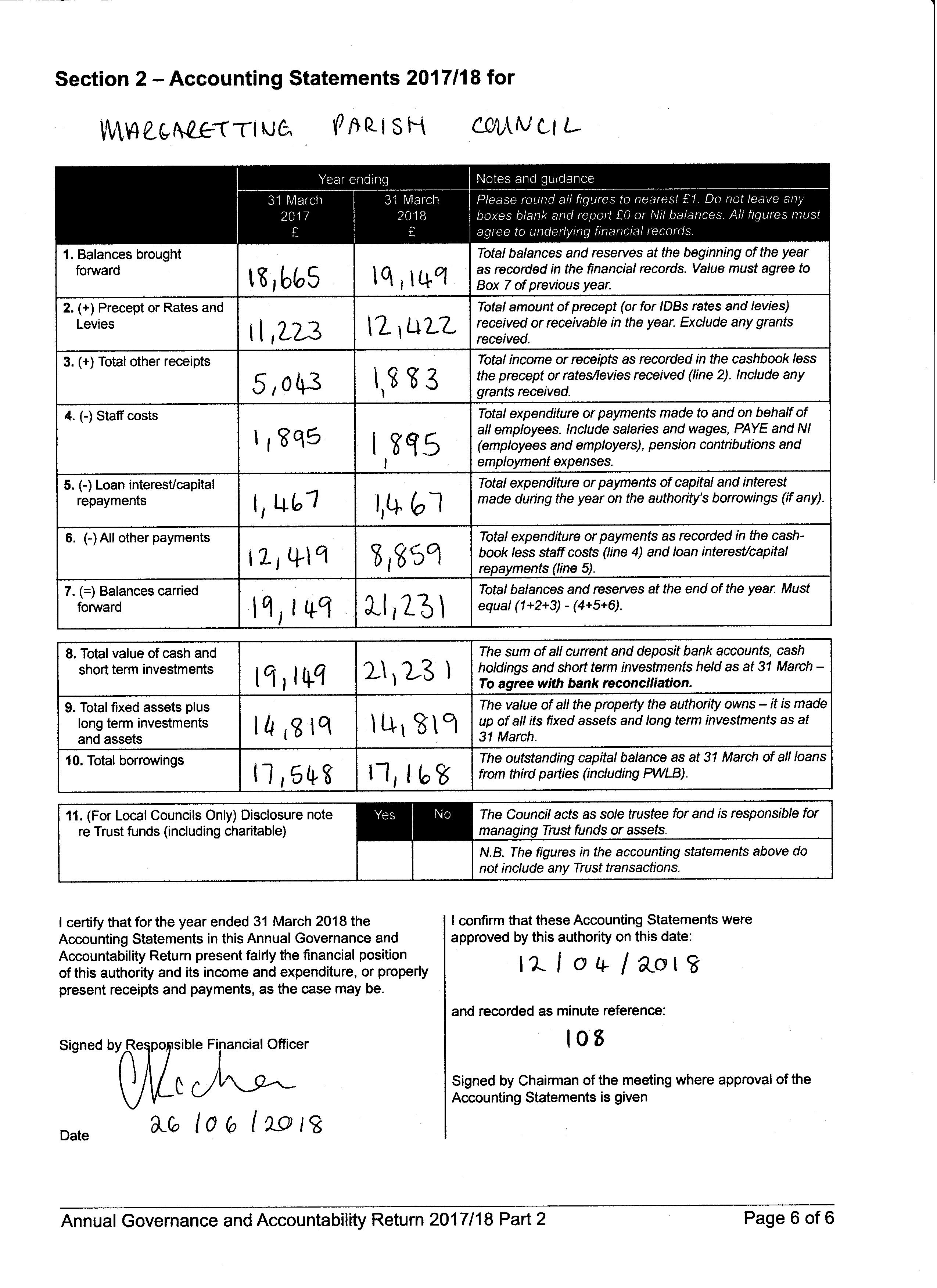 Annual Governance and Accountability Return 2017/18