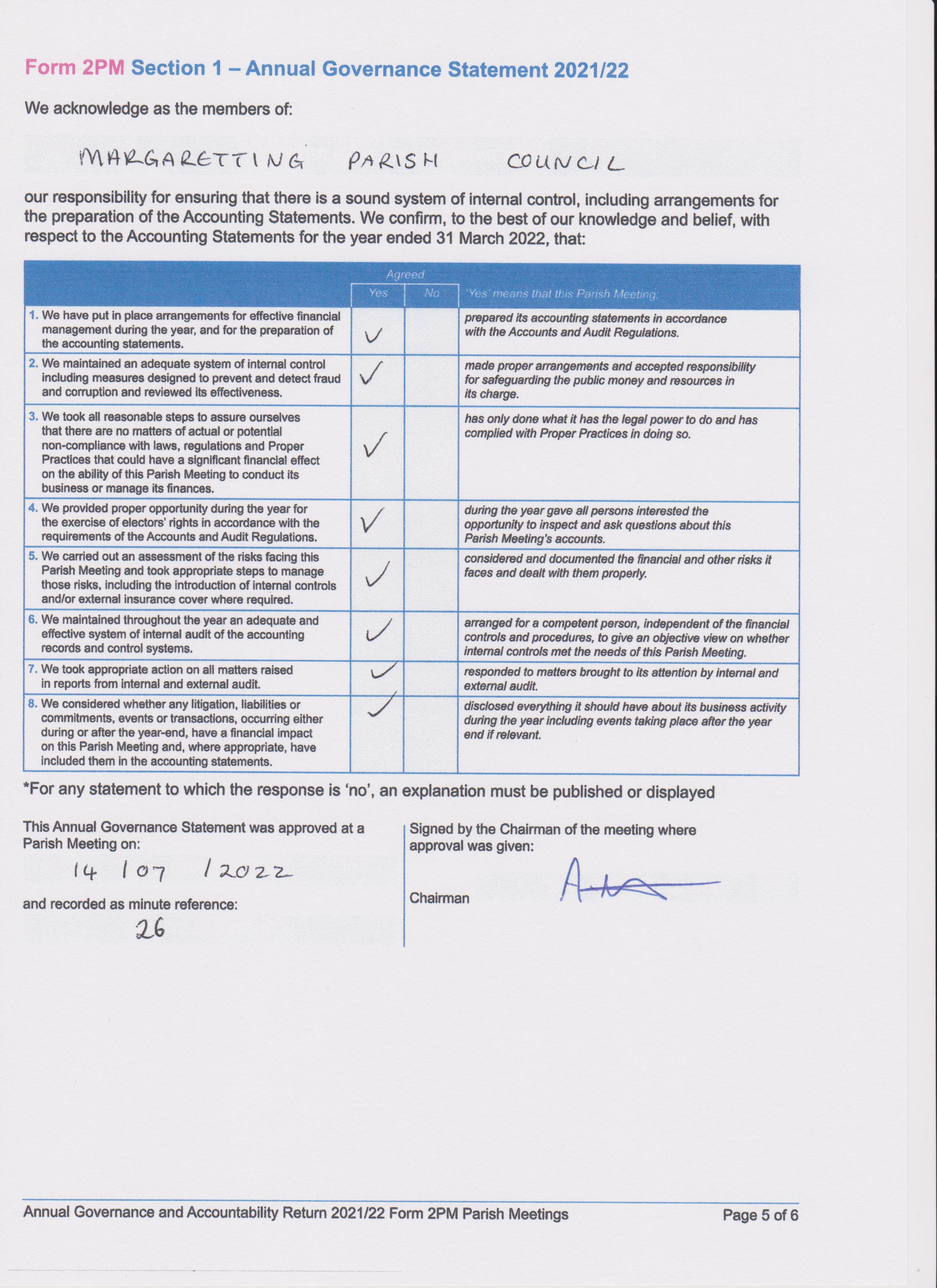 Annual Governance and Accountability Return 2021-2022 - Section 2