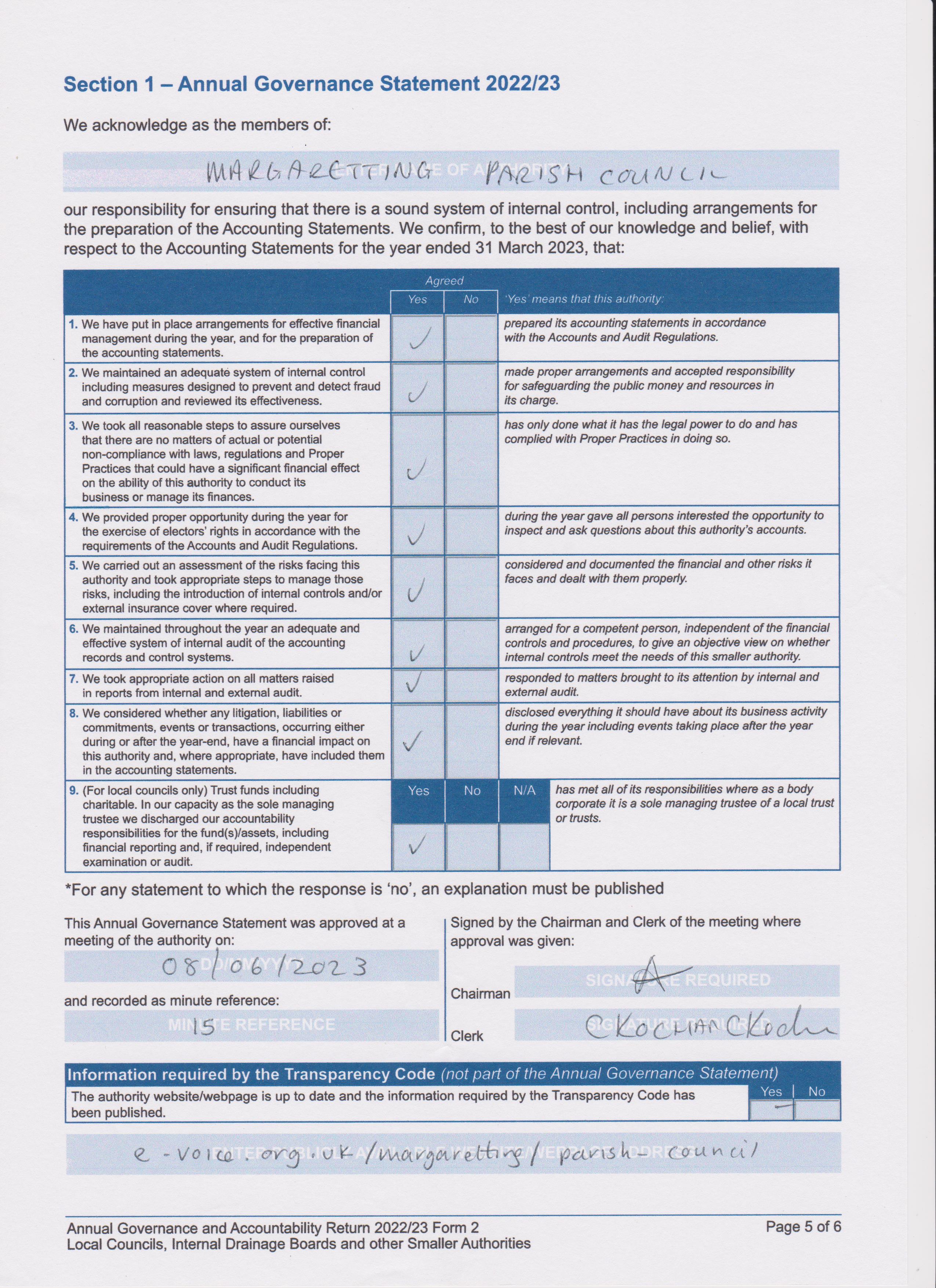 Annual Governance and Accountability Return 2022-2023 - Section 2