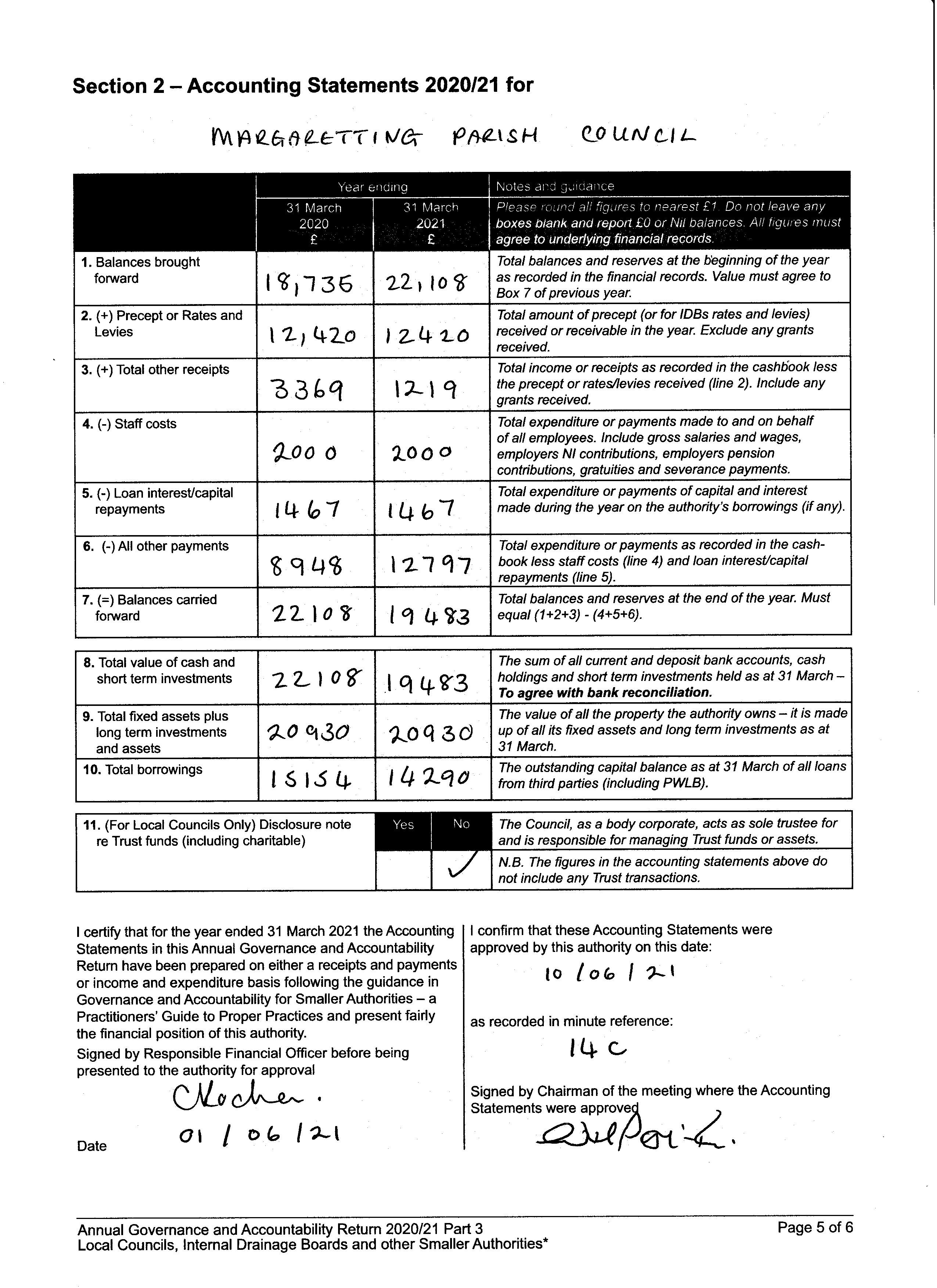 Annual Governance and Accountability Return 2020/2021