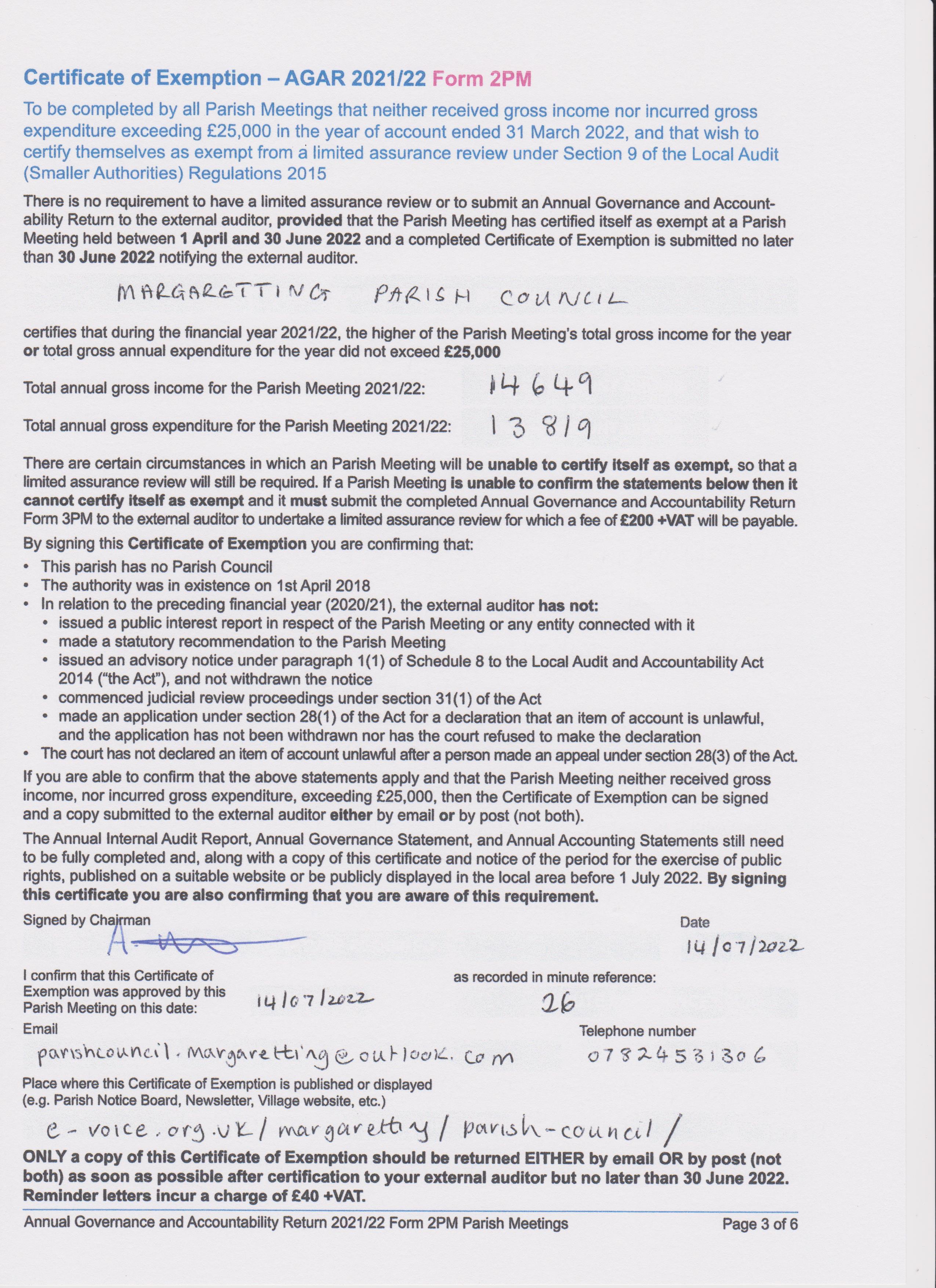 Certificate of Exemption 2021-2022