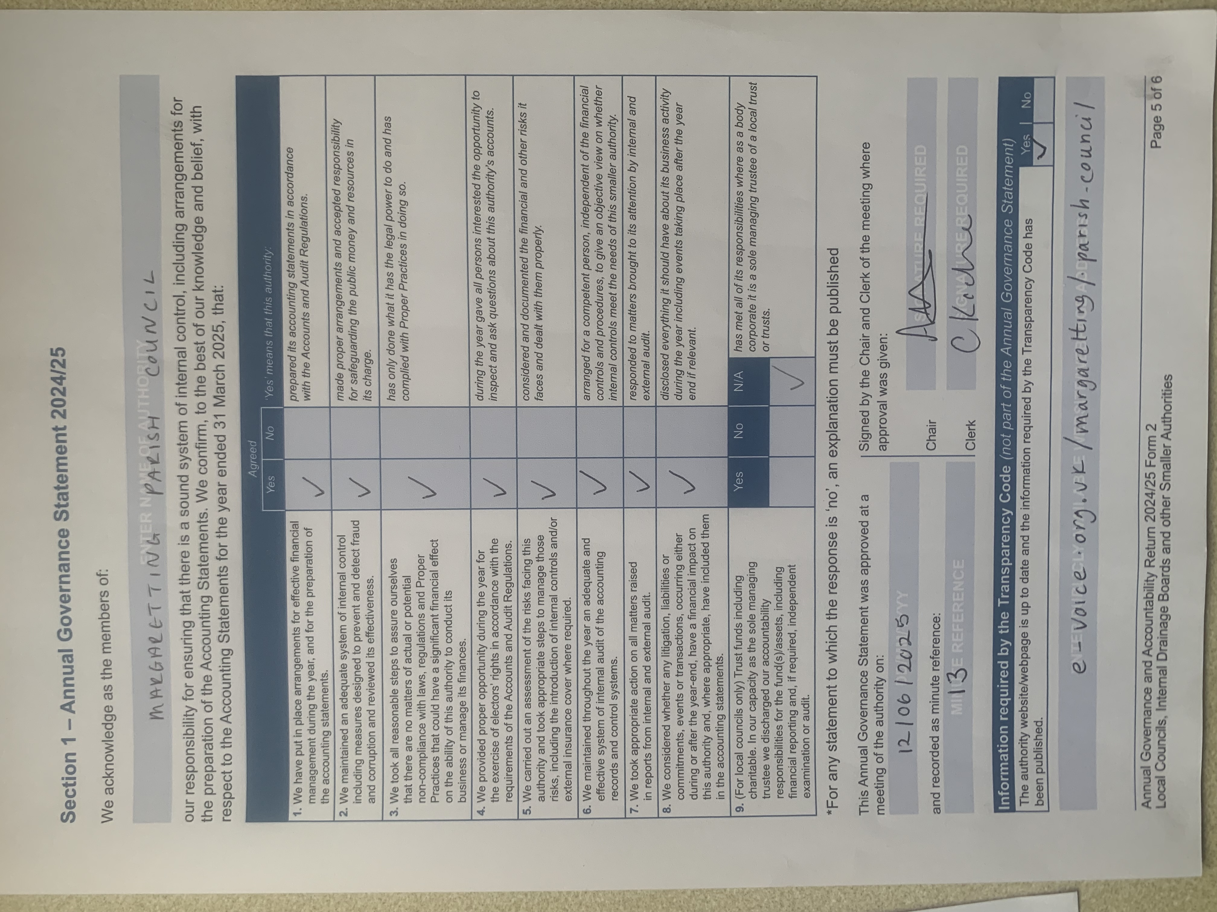 Annual Governance and Accountability Return 2024=2025 -Section 1