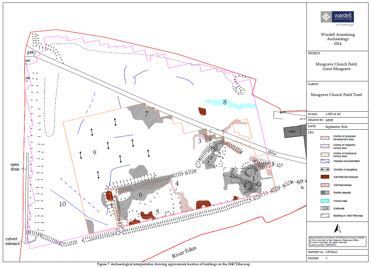 Musgrave Church Field contains a number of earthworks, which are believed to be the remains of an 18th century rectory, including an orchard and gardens. Given the archaeological interest of the site, the geophysical surveys were undertaken to provide further information on the possible presence/absence, nature and extent of potential archaeological features within the survey area.