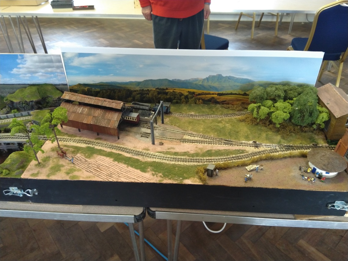We agreed to operate each module from the back and, some of us added backscenes. One ‘rule’ was that there should be no separation as the mainline meandered from board to board. Endboards can complete the story of single modules but introduce separation, instead we want viewers to see along the whole layout, bringing the modules together rather than separating them so we don't have scenic endboards. We also anticipate different open days will necessitate different module permutations, possibly arranged in a single line, or in an L-shape or a U-shape. So we have corner modules and train turntables for each end of the run