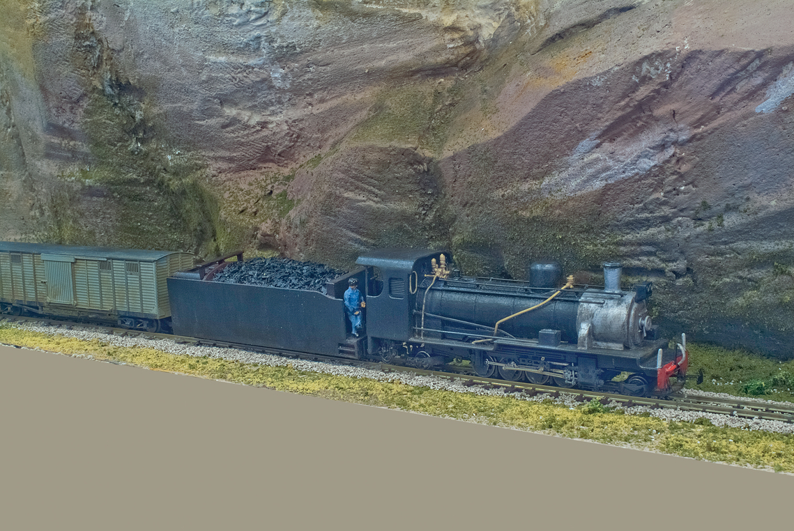 The company gritted their teeth and curled a line up to the village and on to the mine. To cope with the gradients, it had to zigzag up the mountainside, permitting only the shortest of trains.: |