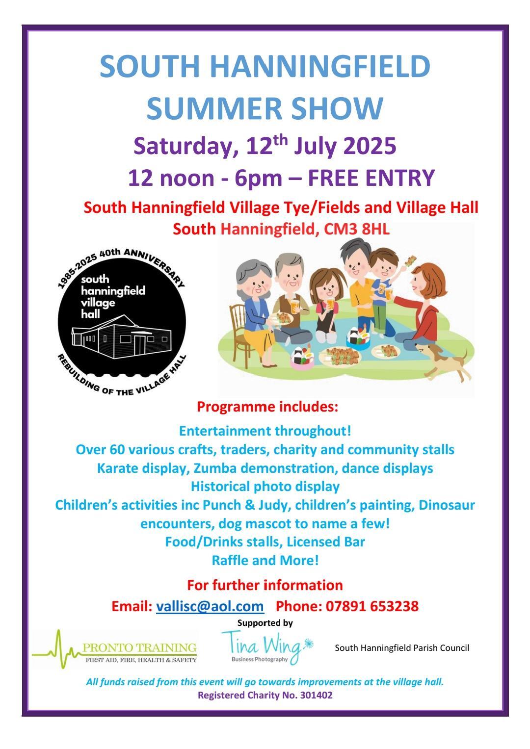 South Hanningfield Village Hall and adjacent field South Hanningfield, Chelmsford Essex CM3 8HL (view map) |