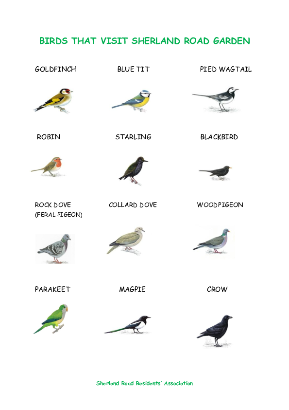 If you see any different species of bird visiting the garden, or birds using the nesting boxes, please email us: sherlandroad@swlen.org.uk