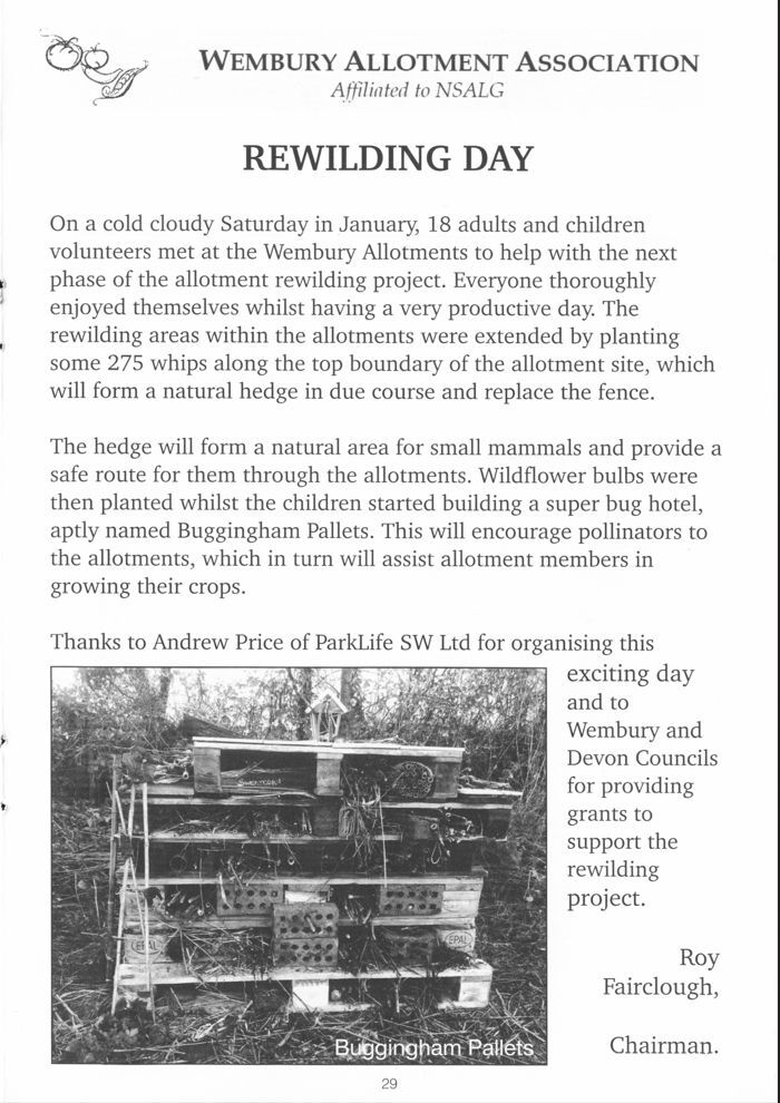 Many thanks to the Wembury Review for allowing us to reproduce and post these stories about the allotments which have featured in the Review over the years.