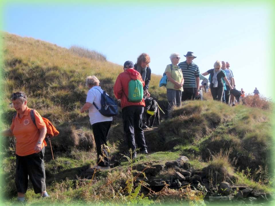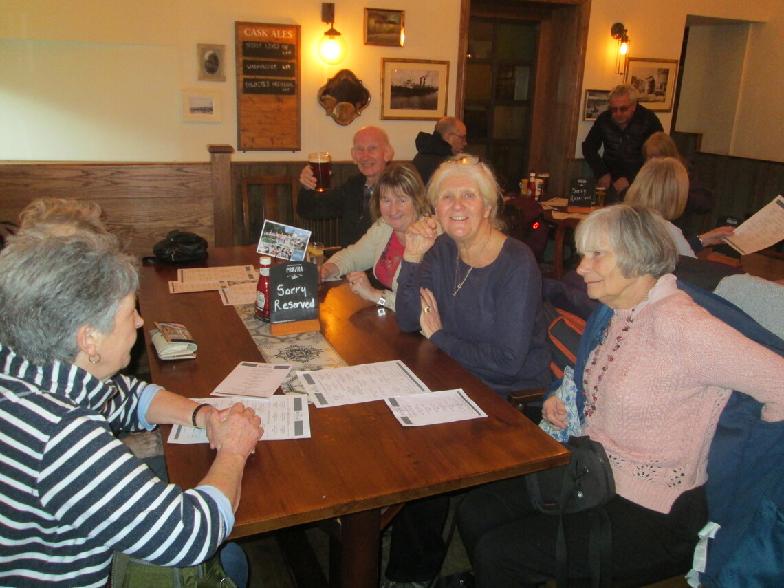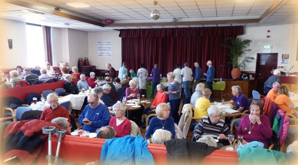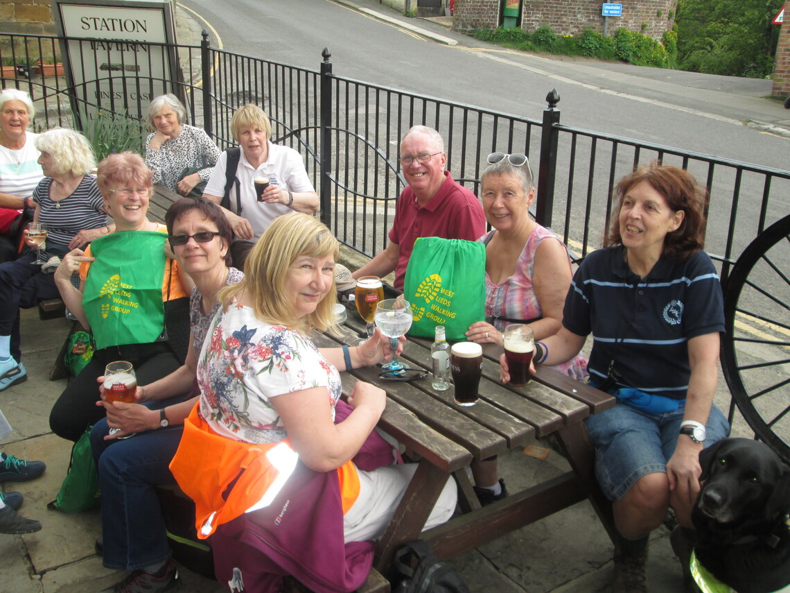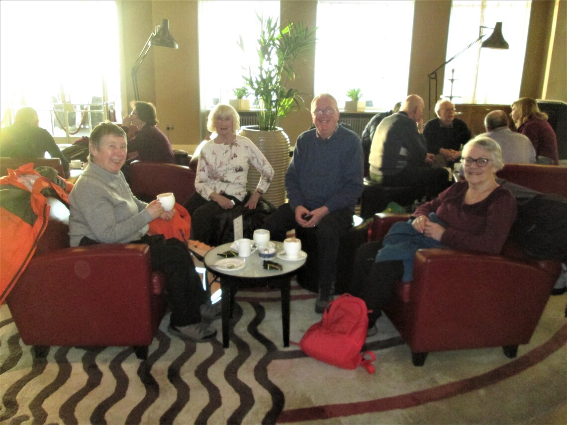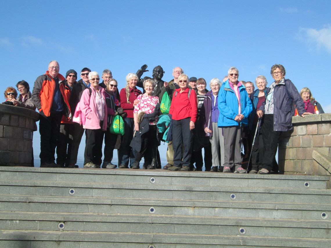 38 walkers did the walk from Bare Lane to Morecambe and 25 went on to Heysham. 17 enjoyed a great meal at The Royal, Heysham then all walked back to Morecambe for coffee at The Midland Hotel followed by drinks at The Staion pub and wine(Thanks to Angela, Treasurer) and snacks on the train back to Leeds
