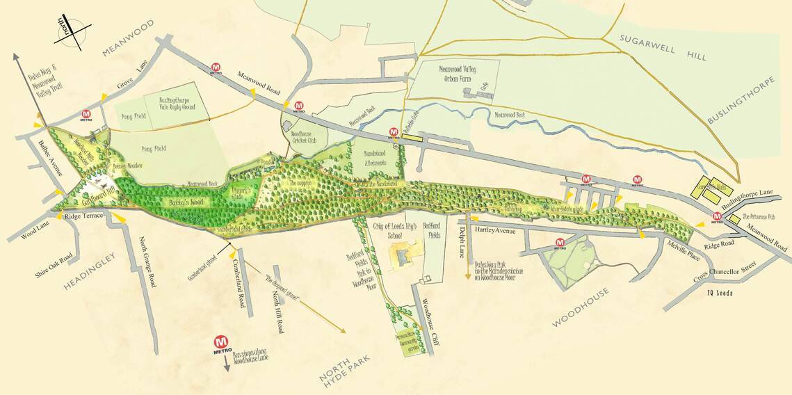 Woodhouse Ridge is a much prized and largely wooded public park in north west Leeds, UK with a distinctly wild feel to it. It is quite long for an urban park (2.5km) and thin in parts (<50m), lying on the eastern flank of Headingley Hill and stretching between Headingley and Meanwood at its north end and Buslingthorpe and Woodhouse at its southern end. It forms a link in a larger network of open spaces and is linked by a footpath known as the Meanwood Valley Trail. Woodhouse Ridge Action Group (WRAG) is a voluntary conservation group, established in 1995 to turn around what at that time was an un-managed, under-resourced and apparently unloved and somewhat dodgy place - and now it's a really lovely place (mostly). And remarkably enough we're still at it as a volunteer group.