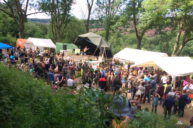 The RidgeFest at the remnant bandstand in 2016, looking north to Meanwood