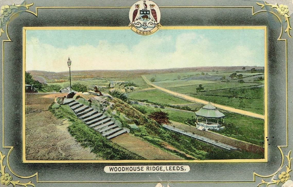 the newly constructed bandstand in 1906, looking north with undeveloped land and Meanwood Road