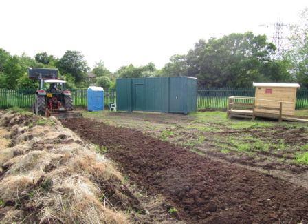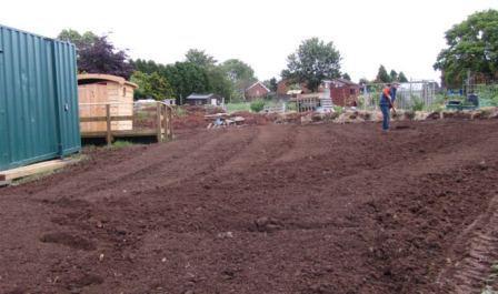 Preparing the area ready for the grass seed... first with tractor assistance, then raking by hand