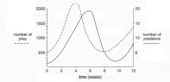 7. The graph shows the numbers of ladybirds (predators) and aphids (prey) on a rose bush over a period of 12 weeks.