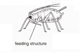 (d) The diagram shows the feeding s- tructure of an aphid. Aphids feed on fluids inside the leaves and stems of rose plants.