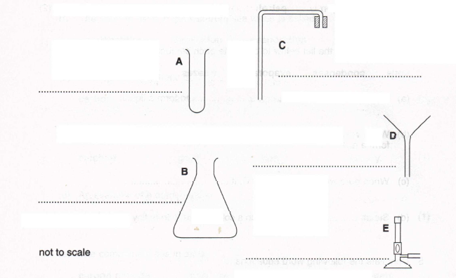 (d) Using one of the three substances in a test tube connected to a gas syringe, describe how you would use this effect of heating to find the density in the air of either oxygen or carbon dioxide. You should include a labelled diagram of the apparatus.