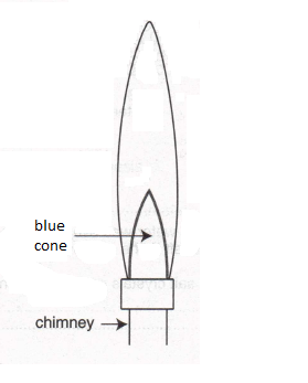 (a) Label, with an X, the hottest part of the Bunsen flame shown above. (1)