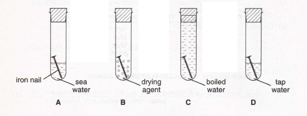8. Simon set up an experiment to test the effect of sea water on rusting, as shown below.