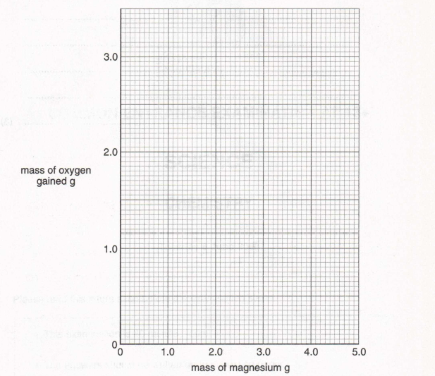 (b) Plot a graph of the mass of magnesium against the mass of oxygen gained. Draw the best straight line through the points.